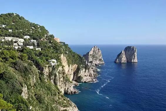 卡普里岛是一个富有神话和历史气息的岛屿,位于那不勒斯湾。据说,演奏迷人的歌曲的汽笛声会引诱水手至此,在这里,他们会丧生。罗马皇帝提比略一直住在这里直到他在公元37年去世时。朱庇特别墅作为皇室住所,是岛上最热门的景点之一。Capri岛最有名的自然景点是蓝洞,它是一个潮汐平稳时,人们可以乘船前往的滨海洞穴。洞口洒下的阳光使水面泛着宝石蓝。从卡布里(Anacapri)城到索拉罗山山顶,骑着架空滑车是人们最喜爱的活动。15分钟的旅程中,你会享受到岛屿和大海的壮丽景色。